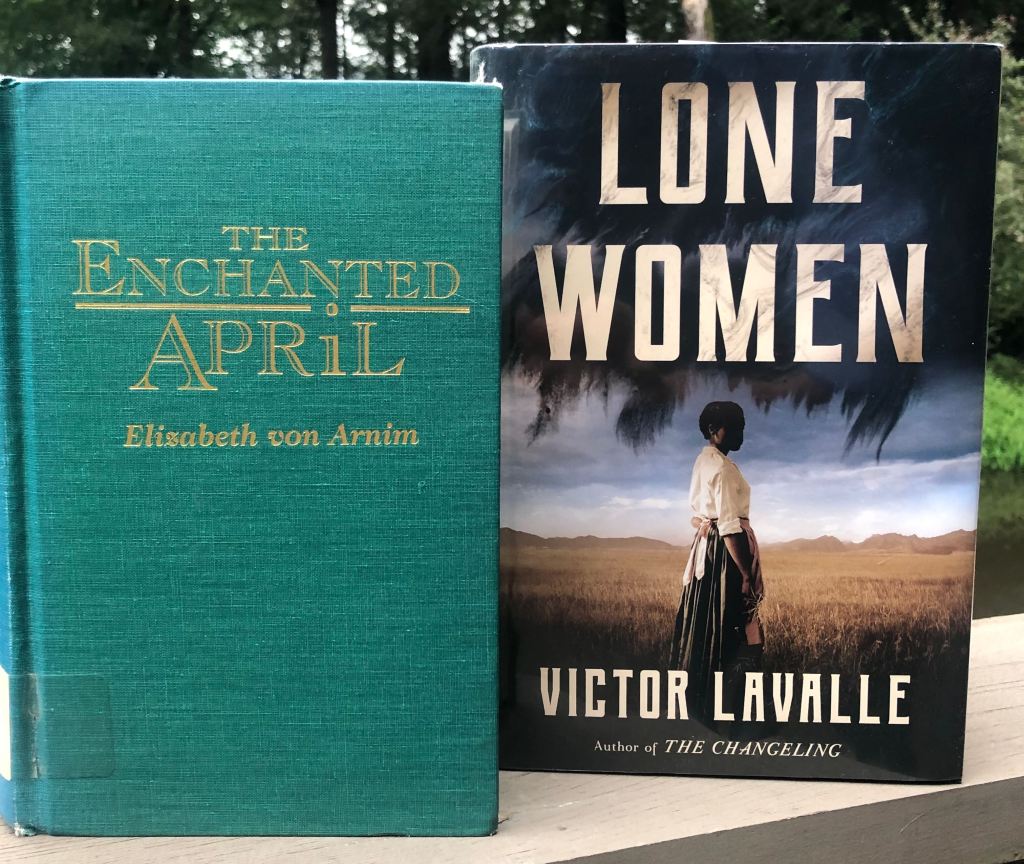 Totally by chance, I happened to read two books this month about women who would’ve appreciated an invitation to the party. Instead, Adelaide Henry of Lone Women by Victor LaValle and Lotty Wilkins of Enchanted April by Elizabeth von Arnim must figure out their own festivities.